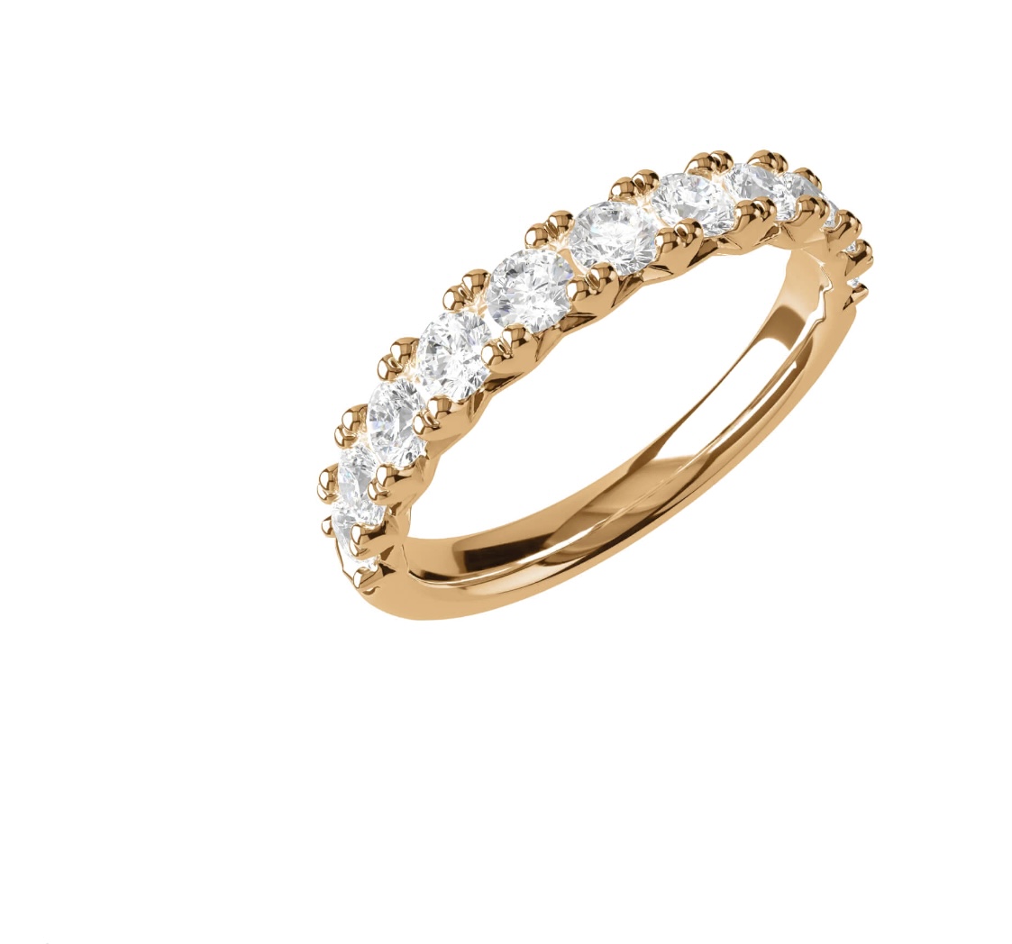 En alliansring med briljanter är en elegant ring där flera diamanter (briljanter) är infattade i rad längs skenan. Ringen symboliserar ofta evig kärlek eller livets milstolpar, eftersom stenarna tillsammans bildar en obruten cirkel av ljus och glans.