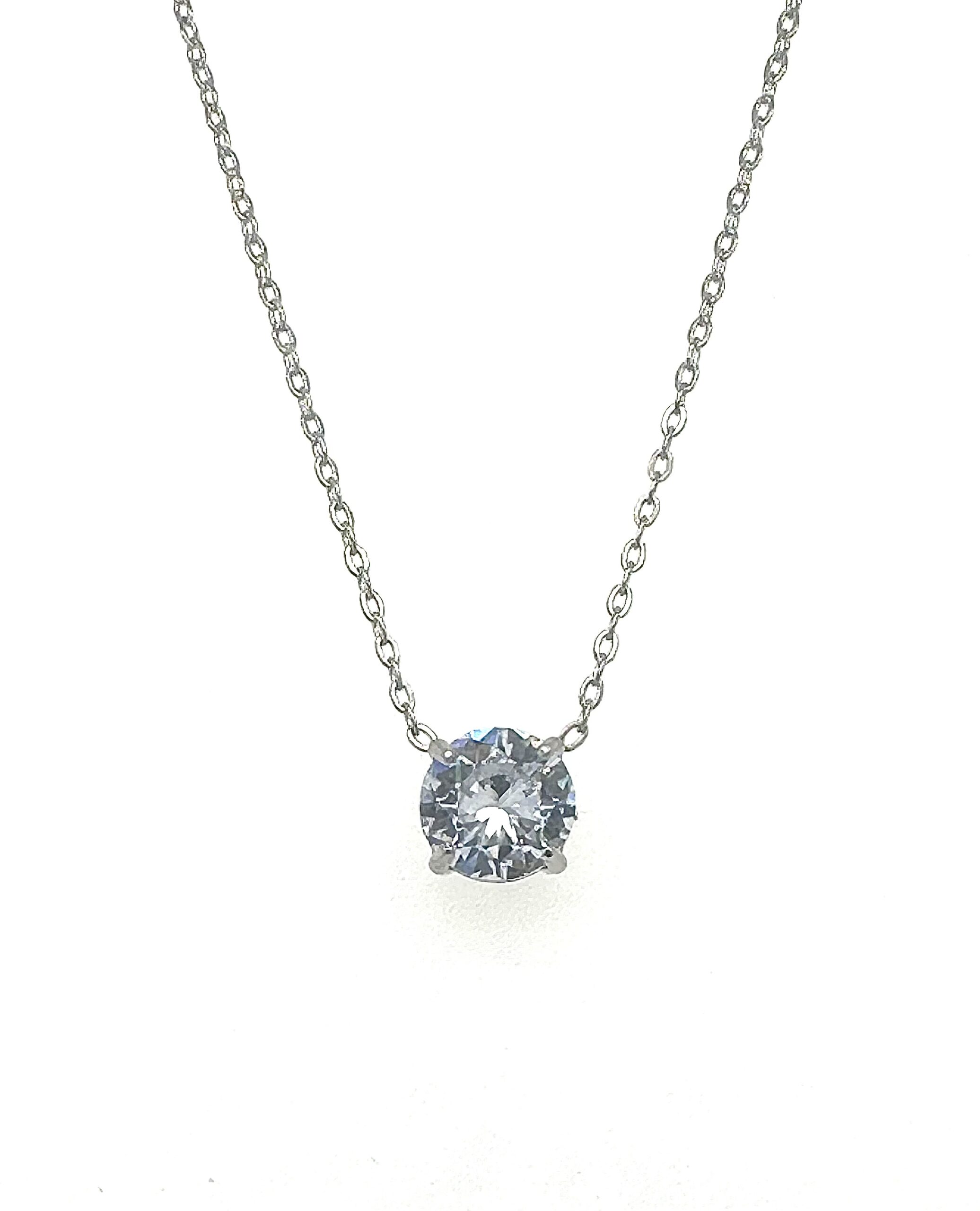 Halsband med sten. Kedja längt 42+5 cm . Stor vit sten 10mm diametern infattad med 4 st klor. Kedjan sitter fast i stenen