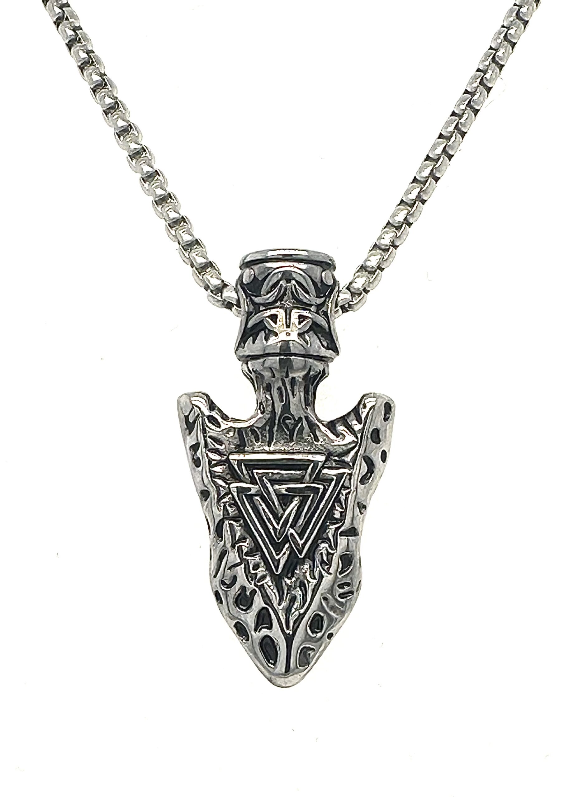 Tufft halsband i stål från Gibrand Design med en 55cm lång kedja. Berlocken är en pil spets
