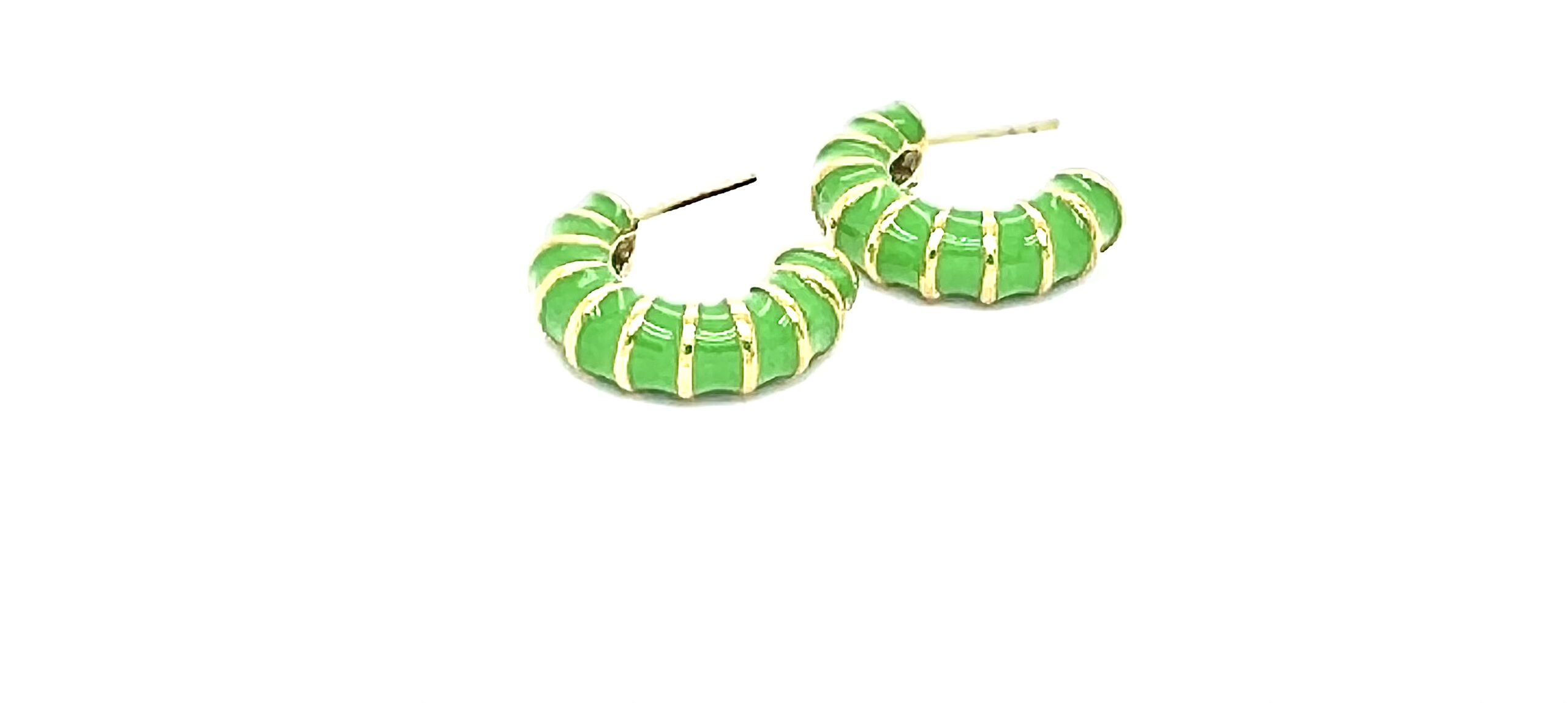 Upptäck elegansen i det enkla – skimrande creoler med en grön detalj som fångar blicken. Lätta, hållbara och lika snygga till vardag som till fest. Ett perfekt val för dig som vill ha stil med glimt! 💚